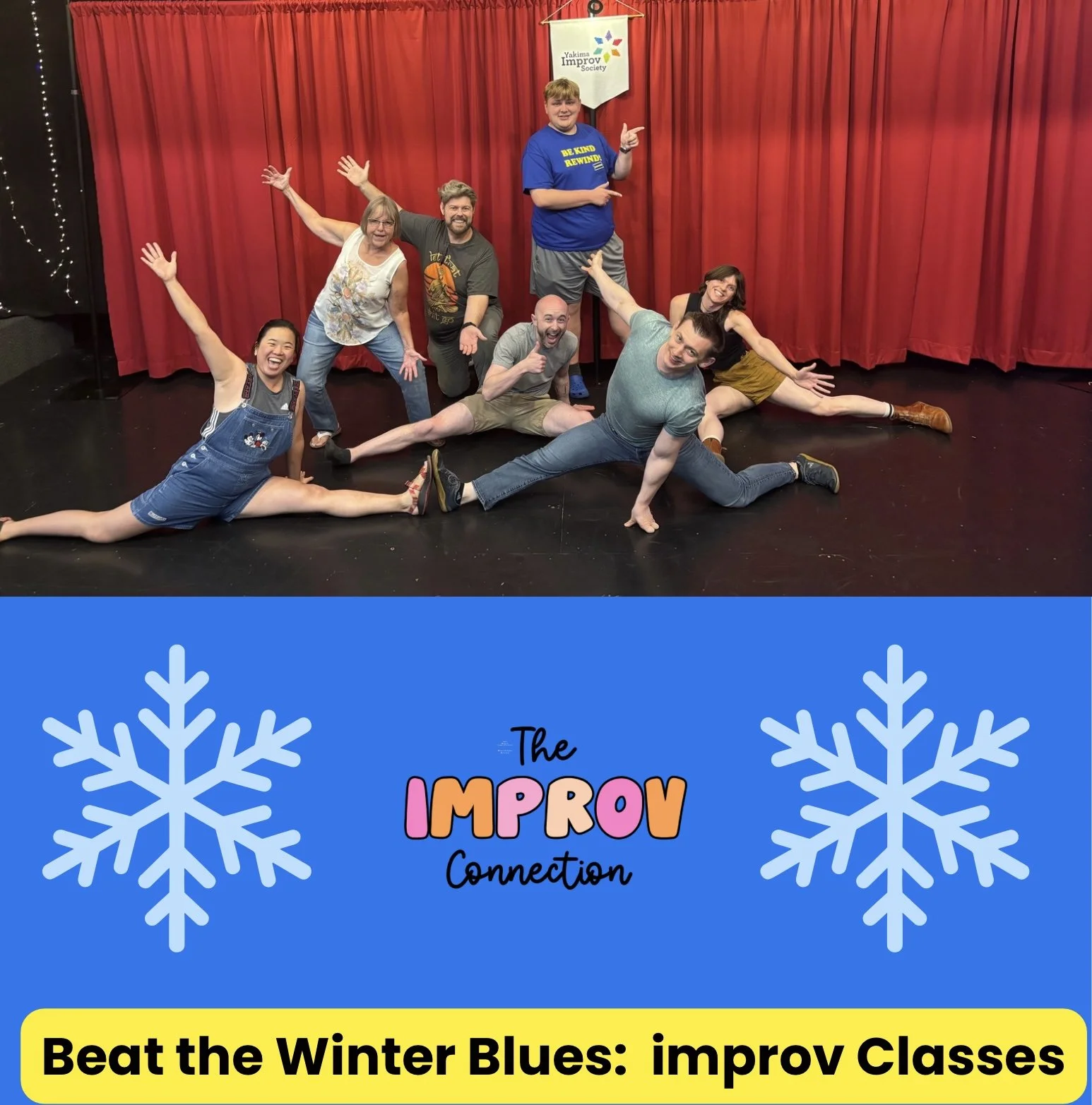 Beat the Winter Blues *NEW Session added! $100.00 Elementary (Grades 3-5) $160.00 Middle School (Grades 6-8) $160.00 Beat the Winter Blues: Improv Classes (18+) $100.00 Sold out Christmas Break Camp (Grades 3-5) $75.00 Christmas Break Camp (Grades 6-8) $75.00 Christmas Break Camp (Grades 9-12) $75.00 Duos Workshop (18+) $50.00 Improv Classes